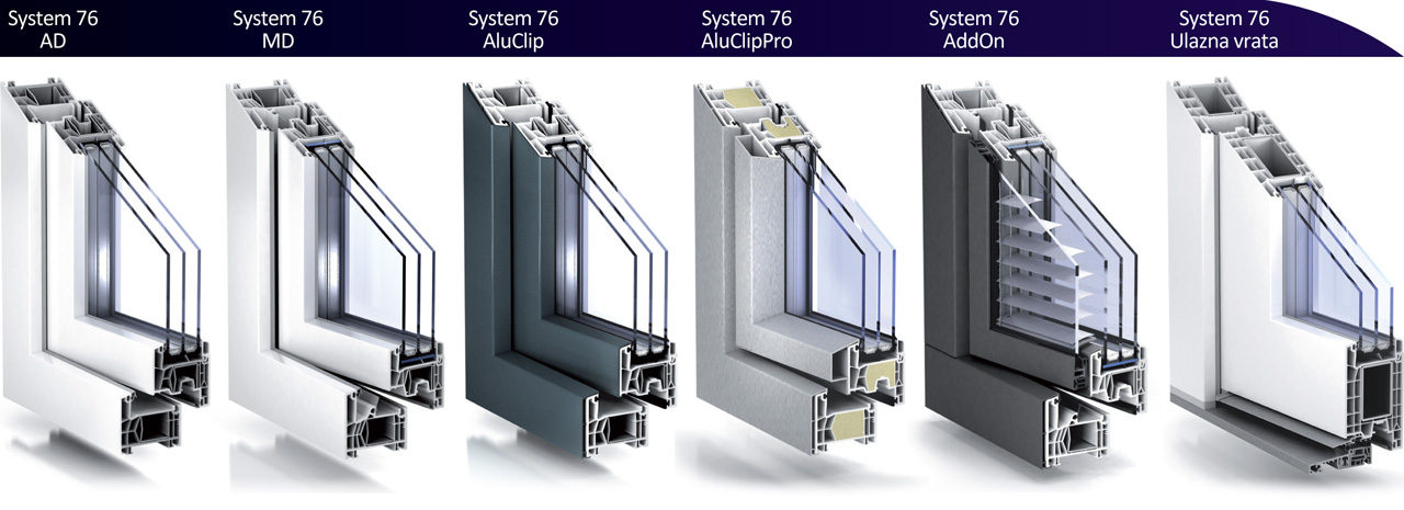 KBE 76 sustav profila predstavlja prolaz u jedan sasvim novi svijet prozora i otvara do sada neslućene oblikovne mogućnosti. Osim velikog izbora boja i atraktivnih dekora drveta, tu je i spoj elegantnog aluminijskog dizajna u praktično neograničenom rasponu boja i završnih obrada s optimalnim izolacijskim vrijednostima. Na razini ideje to i nije tako nov koncept, ali je tek u razvojnim centrima KBE-a pretvoren u funkcionalan (i zaštićen) sustav. A onda je uslijedila (r)evolucija: od jednostavnog AluClip sustava, preko profiliranih aluminijskih obloga koje preuzimaju i značajan dio statičke funkcije u AluClip Pro izvedbi, dodatnog aluminijskog AddOn okvira s još jednom razinom ostakljenja na već postojećem PVC prozoru, do AluClip Zero dizajna (sa svojim vlastitim podvarijantama) koji plijeni neponovljivom vanjskom elegancijom i toplinom materijala u interijeru.